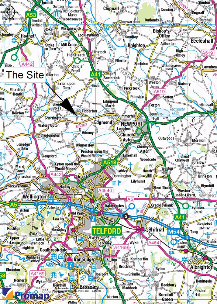 The site is located with in the village of Tibberton, Shropshire, approximately 5 miles west of Newport, 11 miles north of Telford and 15 miles east of Shrewsbury . There is a mainline railway station in Telford offering a link to Birmingham New Street in approximately 37 minutes and to Wolverhampton in 18 minutes. The village of Tibberton has a pub, primary school and village shop within walking distance of the site.